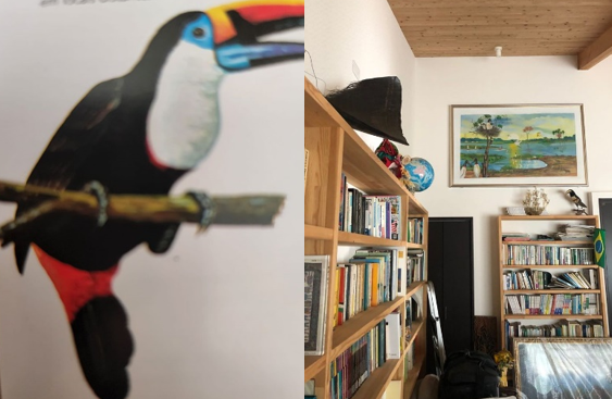 阿蘇のセンターにも、白い嘴のオオハシが飾られている。オオハシと言えば、Tucano-de-peito-branco(白胸のオオハシ)もアマゾンに特徴の鳥かもしれない。いくつか種類のあるオオハシのなかでも最大であり、体長はおよそ55センチメートル、体重は500グラムを越える。水の流れのある原始林近くの樹冠を縄張りにしている。昆虫、果実、小さな脊椎動物(vertebrado)を食する。オオハシの嘴はピンセントの役割を果たし、小鳥や同じ種類の卵や雛を強奪するのに使われる。この点、愛くるしく見えるが、存外獰猛な鳥である。